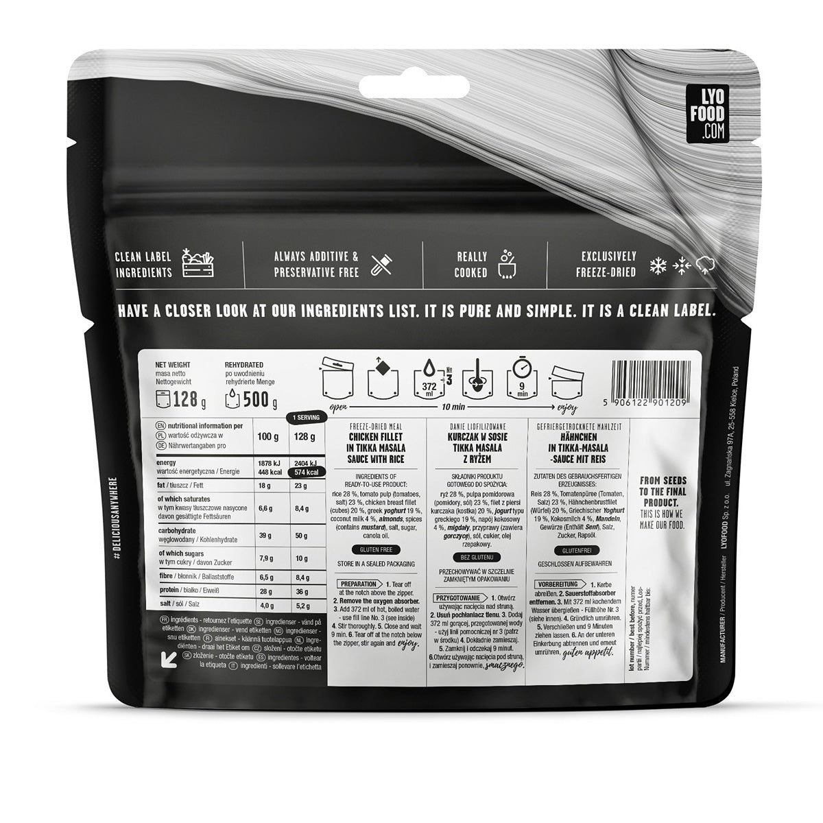 The LYO Expedition Chicken Tikka Masala is a renowned Indian-inspired dish that enchants with its smooth consistency and alluring fragrance. Tender chicken breast, soaked in yogurt and a hearty blend of spices, is cooked in a velvety tomato and coconut-based sauce. Served with rice, this meal is both delectable and calorically rich, making it an excellent choice for outdoor excursions. It's no surprise that our ambassadors and customers alike adore this dish.