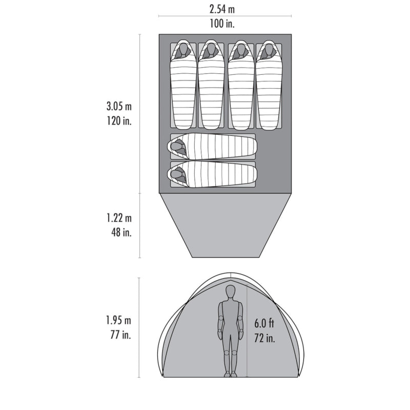 The MSR Habitude™ 6 Family & Group Camping Tent is able to comfortably shelter and sleeps six people whilst the standing height capacity gives a truly spacious living space during your wilderness adventures. The addition of some neat features, such as the enormous vestibule to store lots of gear and the added storage pockets all help increase the liveability and comfort afforded to the occupants.