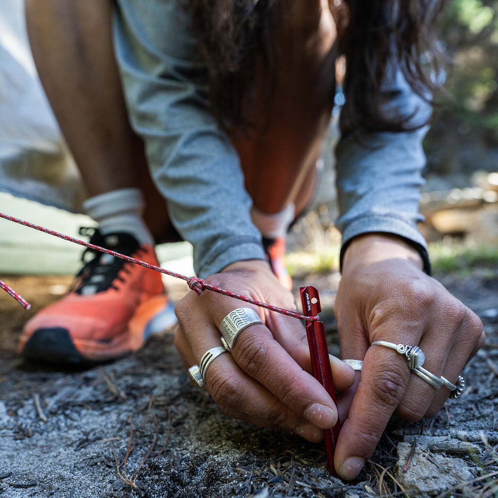 The symmetrical tent design allows for a quicker setup than expected, especially useful during unexpected rainstorms. Durable and lightweight DAC poles, a PFAS-free water-repellent coating and taped seams ensure stability and dryness, keeping you comfortable in any weather. The rainfly’s large vestibules provide ample space for storing gear not intended for inside. Easy-to-use vestibule doors with StayDry™ rain gutters capture drips while updated kickstand vents enhance airflow. Premium metal corner hardware is simple to operate and incredibly durable, complemented by eight included Mini Groundhog™ stakes that are both strong and lightweight.