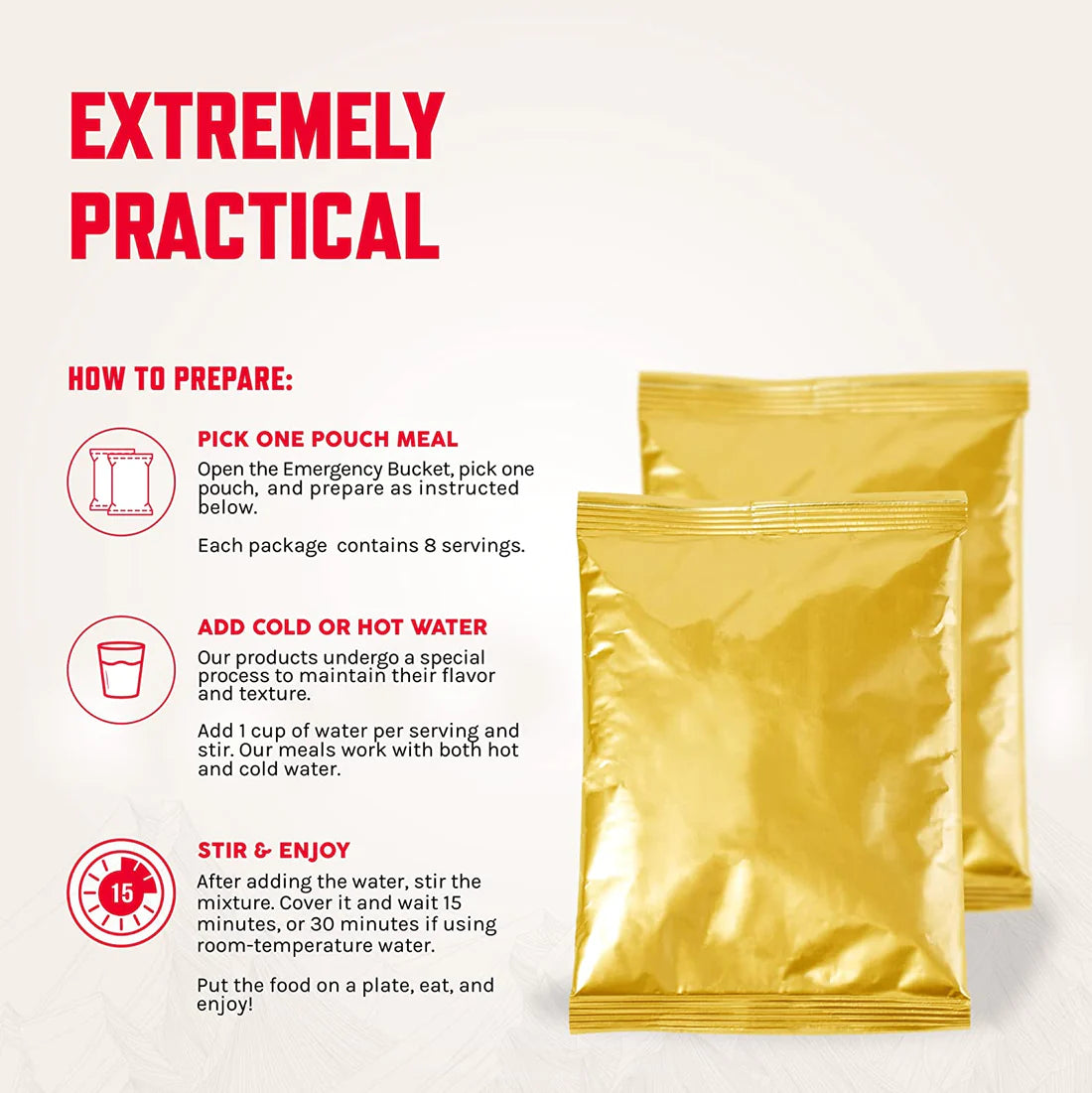 Contained in a convenient, easy to store bucket, food stays safe and secure so they're ready when you need them most.